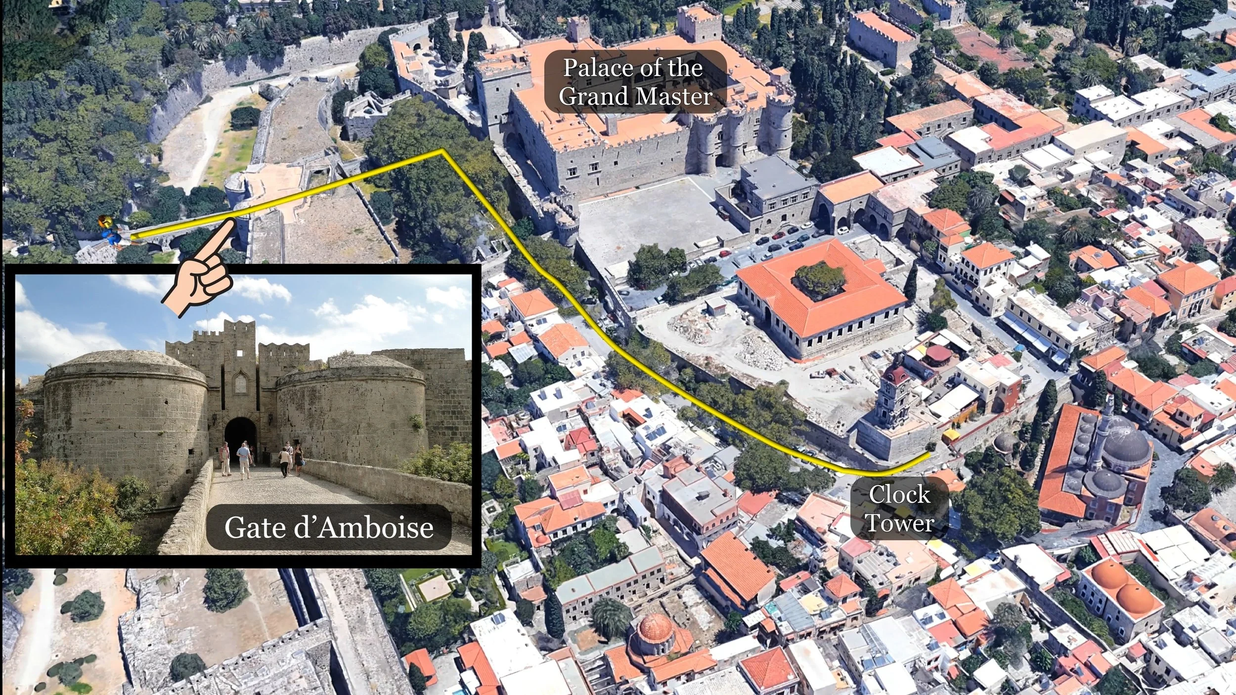 Some journeys include visual cues such as routes and landmark locations to help orient you within each destination.