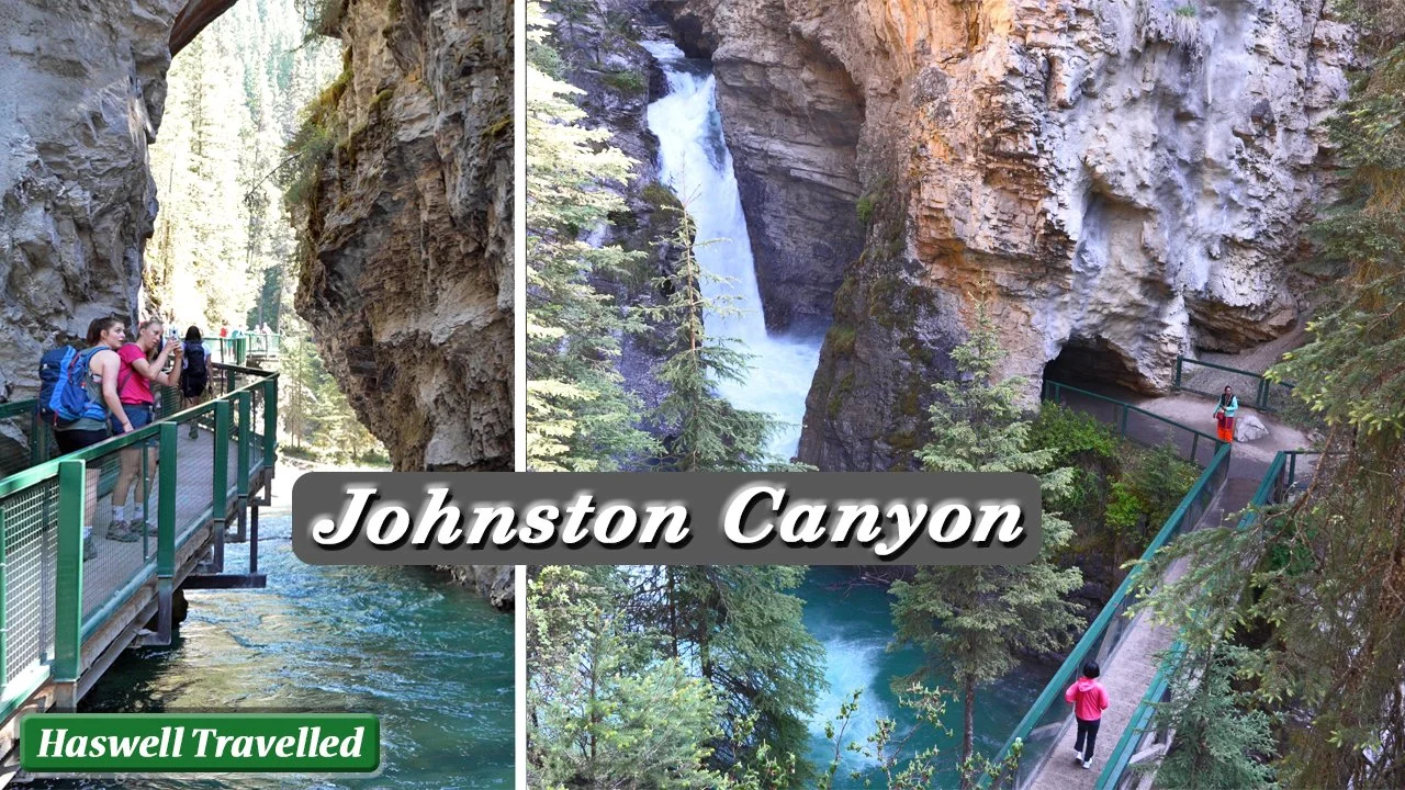 Watch the Video: Hike Johnston Canyon - the most popular hiking trail in Banff National Park. The trail takes us through a narrow gorge with catwalks and waterfalls with many spectacular views. The journey up is experienced in the morning with much of the creek in the shade. The trek back is just before noon as the sun was lighting up the creek with beautiful shades of green.